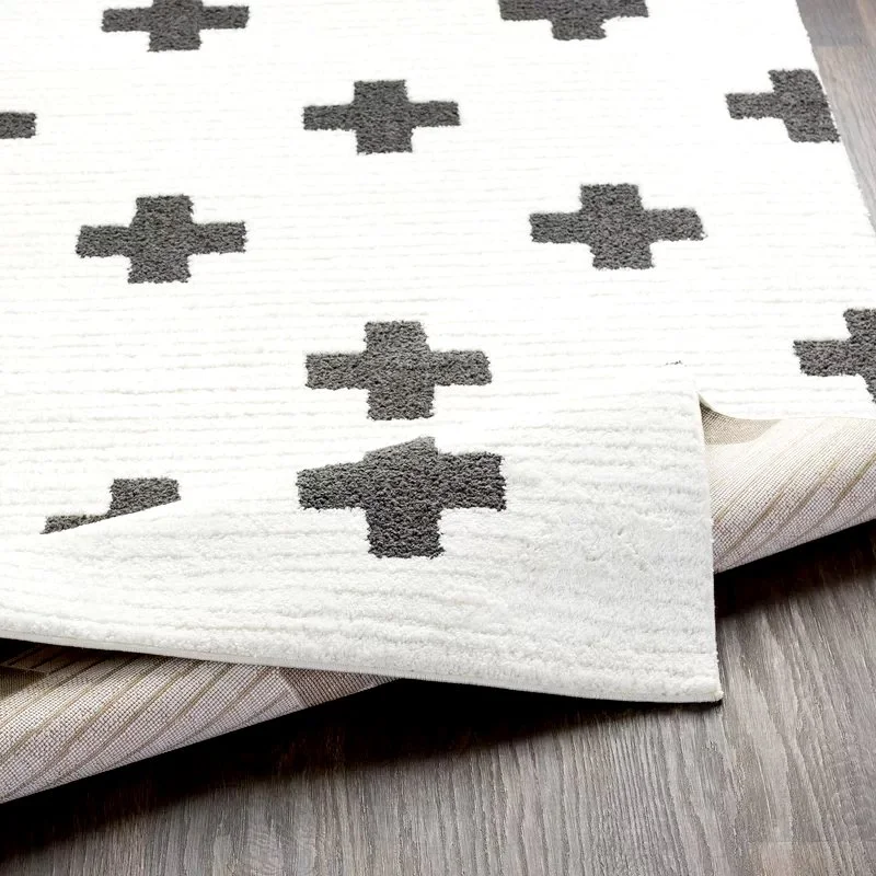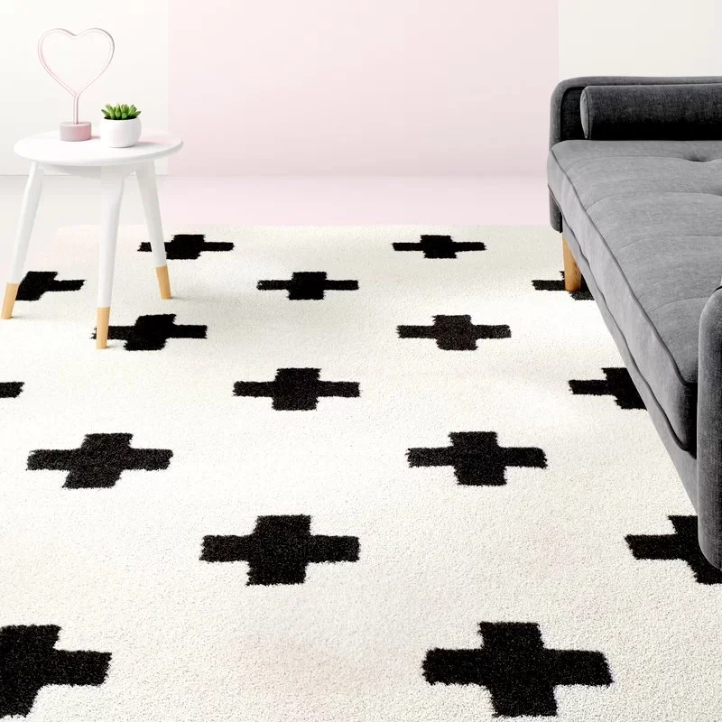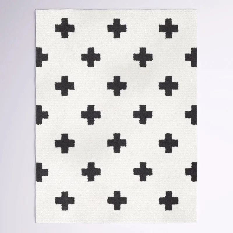 A modern pattern rug with the cross used in healthcare, also a sign for positive alluding to polarity and energy.