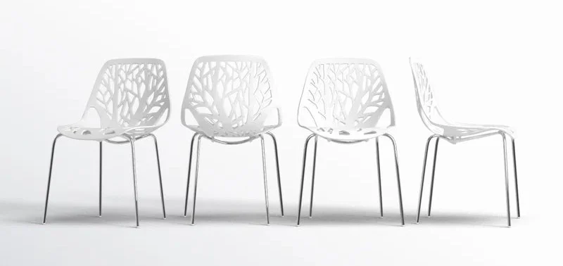 These chairs are more in-line with the look of the towers. The reflective finish will keep them from being dead (non-reflective) in the dark.