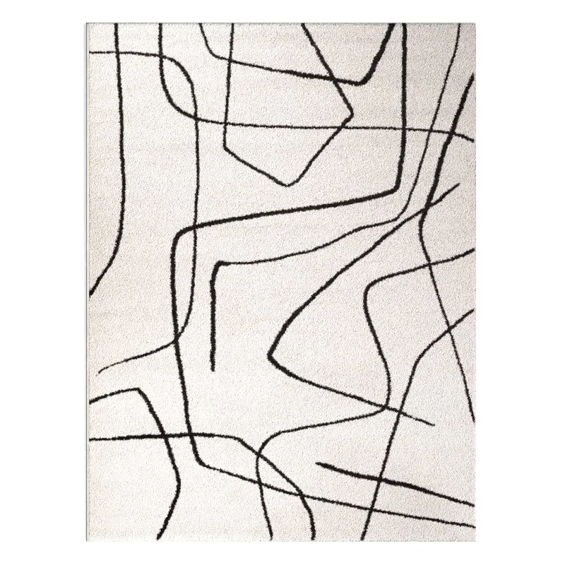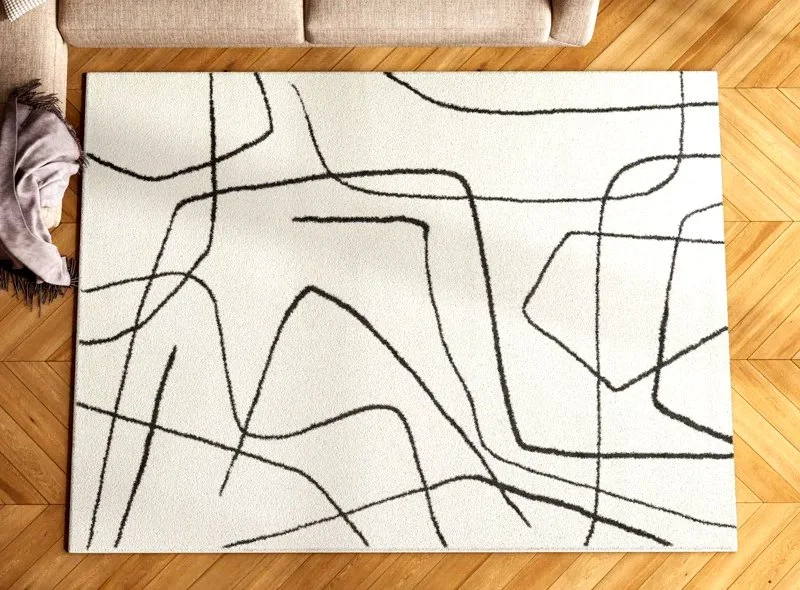 A second option, an abstract rug to warm-up the room while keeping it modern and airy.