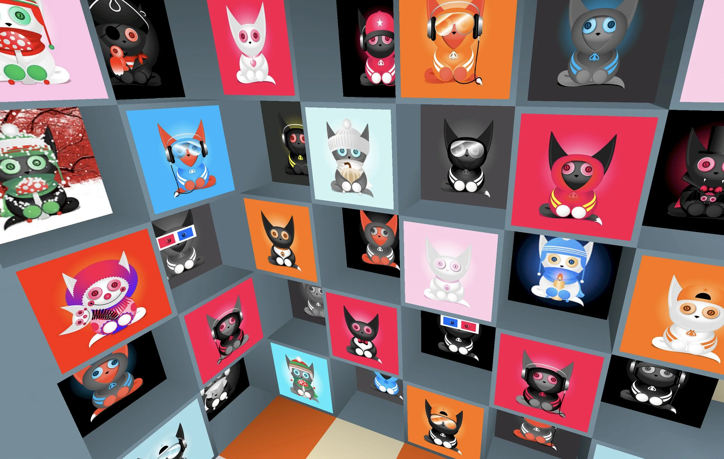 Designed around a center staircase, with three floors and a roof area with a video streaming from YouTube or Twitch, this gallery is set to accommodate 23 JPG/PNG/Gif on the outside and 43 JPG/PNG/Gif on the inside, but it’s built to allow for the addition of many more pieces with very simple customization work.