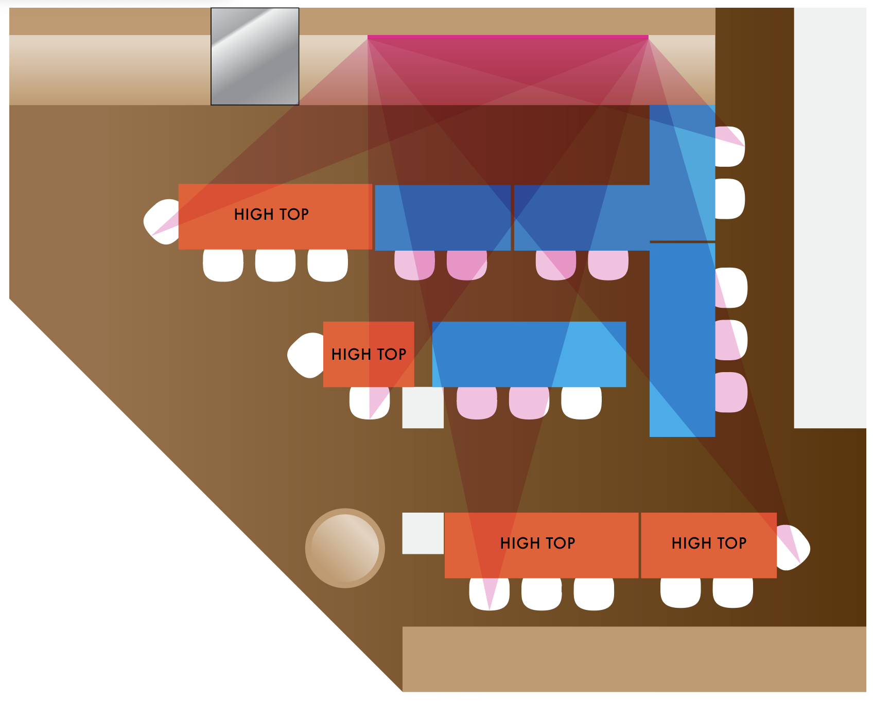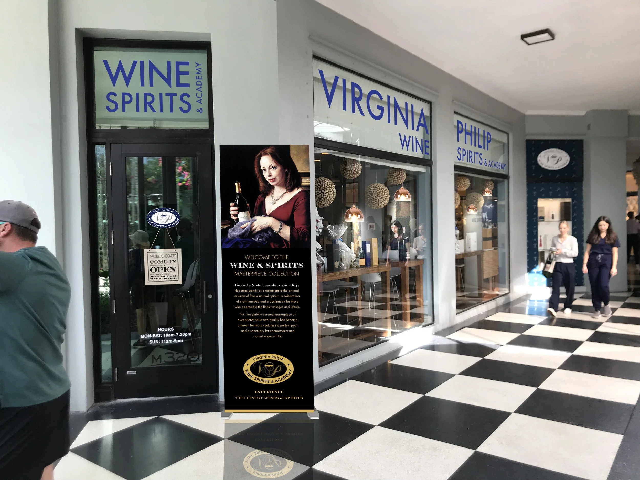 Adding a TV screen will allow you to have it ON always. That TV should be playing interviews with Virginia Philip, ads about the classes, promotions, wines or spirits you’re pushing, your Delray store, online Virginia Philip classes, Virginia Philip suggestions for pairing wines for upcoming holidays, delivery awareness, curation services, subscriptions, lots of video of wines being poured, etc. This TV should be on even when the store is closed. That should bring light and movement to that dark corner. You could also use it to give classes remotely. And you could record classes, so that your someliers can run the VP classes and you don’t have to be present.