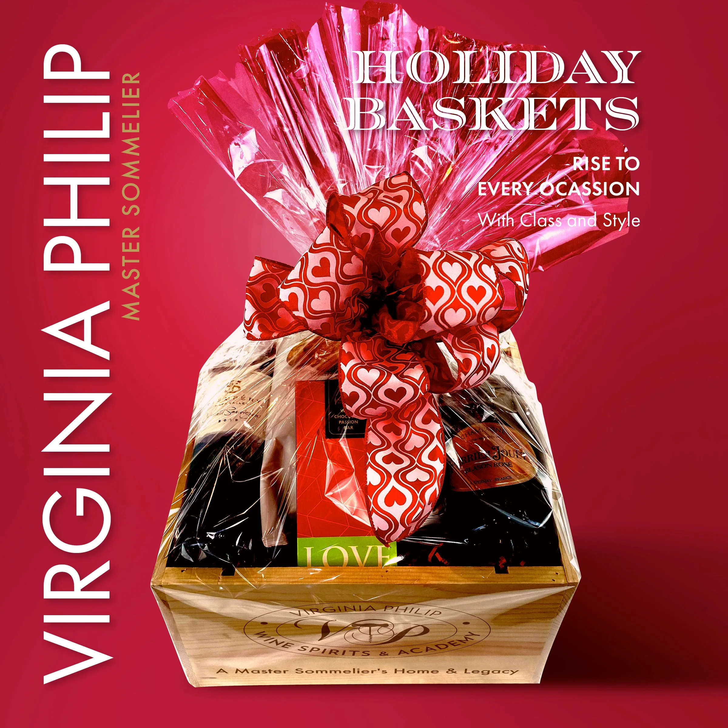 Introducing the Gift Basket Collection from Virginia Philip Wine, Spirits & Academy—expertly curated by Master Sommelier Virginia Philip. Whether for a special occasion, corporate gifting, or a thoughtful surprise, each basket is crafted with world-class wines, gourmet pairings, and sophisticated presentation.