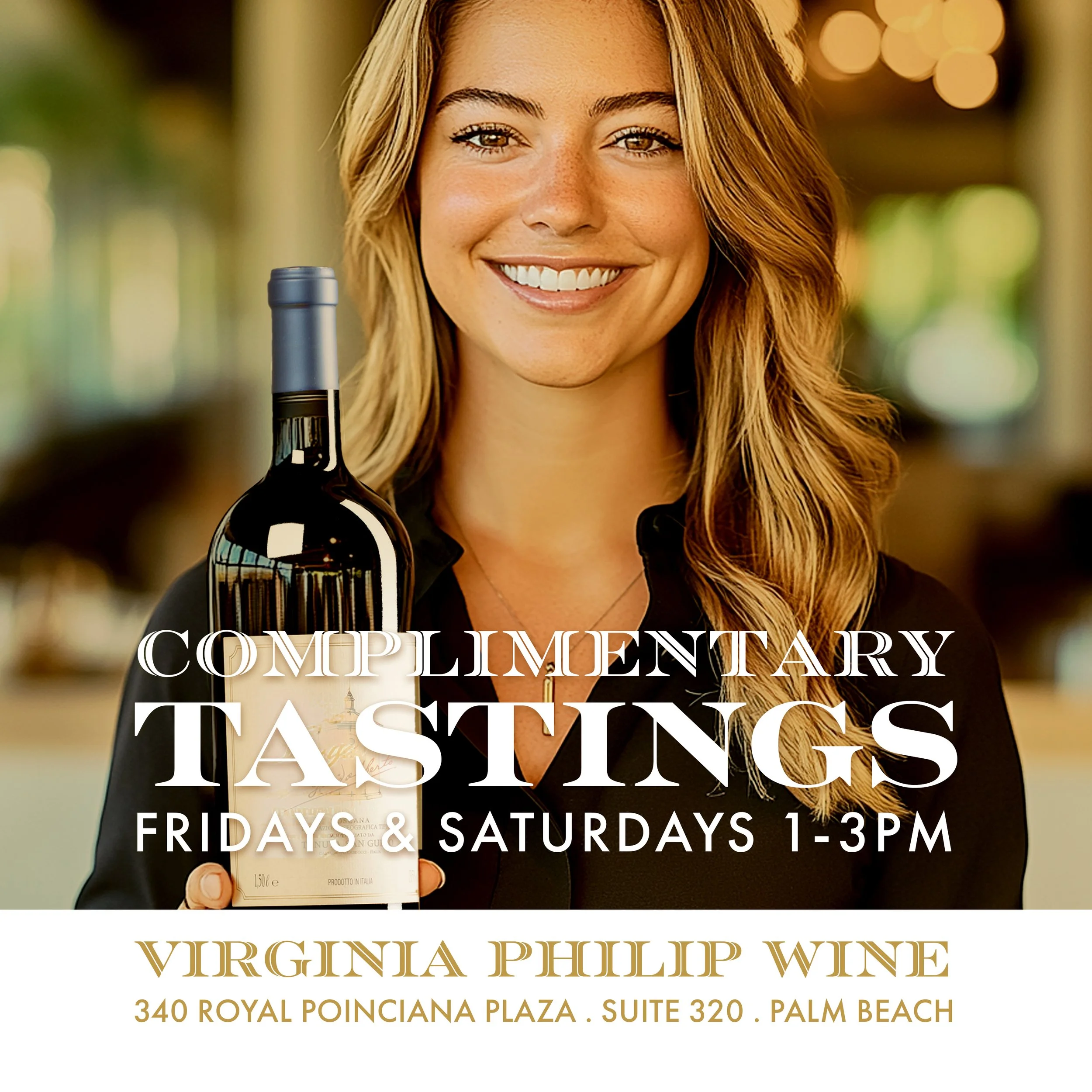 Join us for Complimentary Tastings every Friday & Saturday from 1-3 PM at Virginia Philip Wine, Spirits & Academy. Explore a curated selection of exceptional wines, guided by our expert sommeliers. Sip, savor, and discover something new!