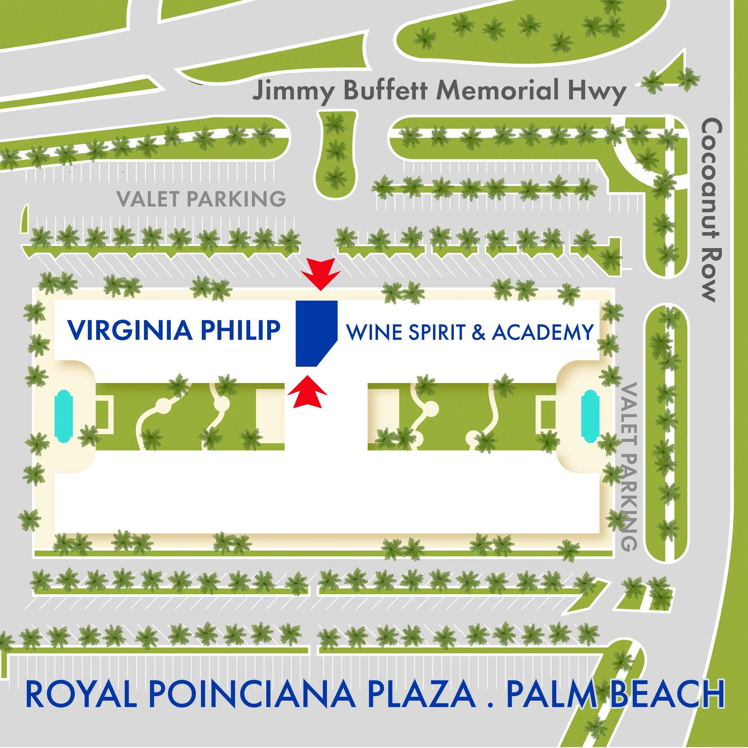 Visiting Virginia Philip Wine, Spirits & Academy? We’re conveniently located at Royal Poinciana Plaza in Palm Beach with easy access to valet parking. Stop by for expert wine selections, exclusive tastings, and curated gift baskets—all guided by Master Sommelier Virginia Philip.