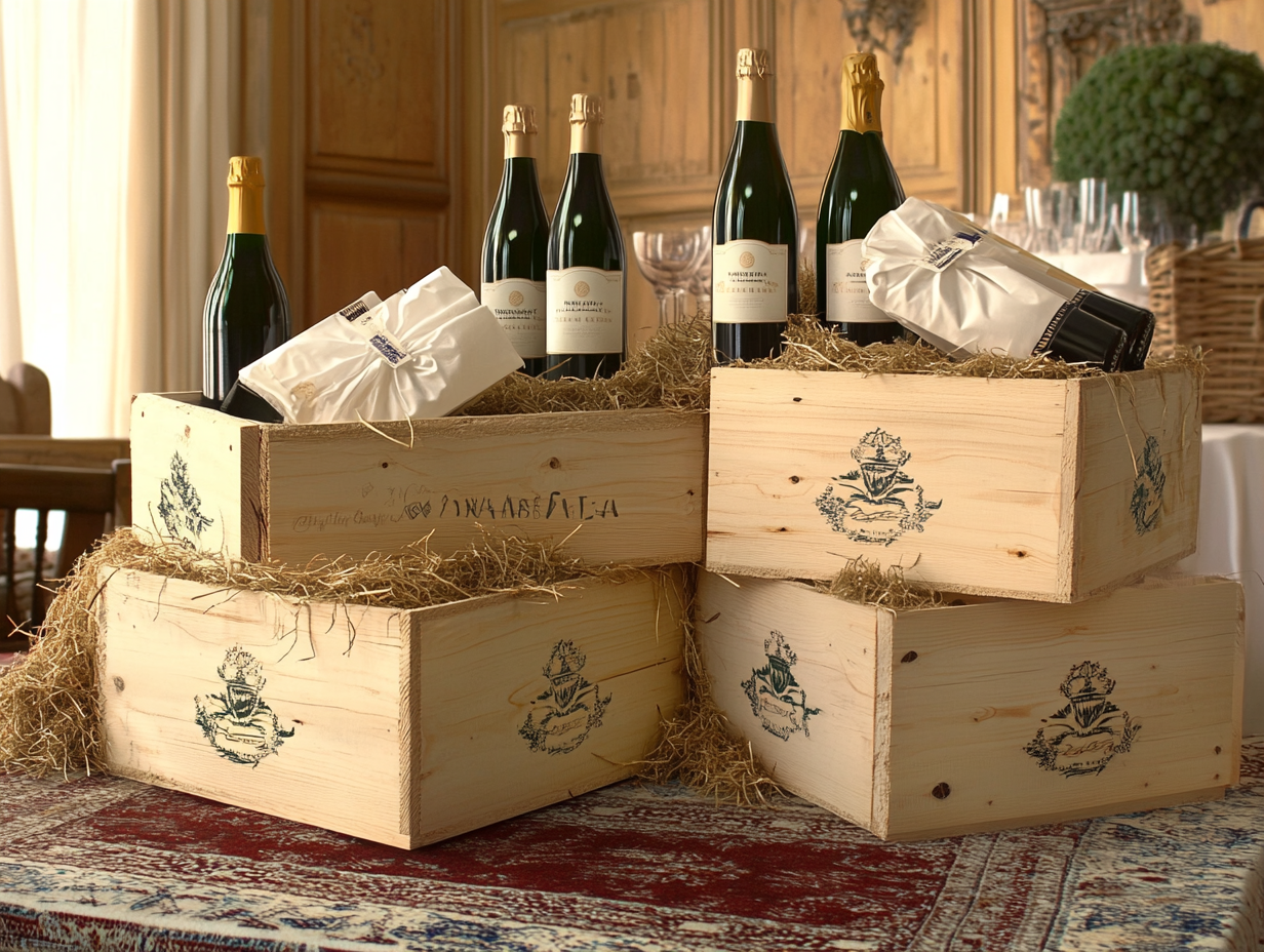 We believe that what would work best, and would be great for your store’s windows is a long base of staggered stacked wine boxes of different sizes and brands, packed with hay, displaying dummy champagne, wine bottles and glasses.The barrel should be a part of this display too, maybe showcasing whisky and other spirits on top. A sequins curtain in champagne would be a nice addition, it would pick up the light from outside and shimmer, bringing light and movement to the window. If it doesn’t look good all the way down, we should trim it to fall to the right height. See some options on pics below.